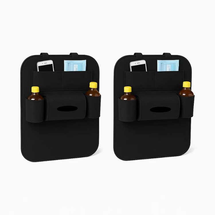 Coppia di portaoggetti sedile auto in feltro. Leggero, resistente e dal design intelligente, è l’ideale per chi cerca accessori auto utili per ogni giorno.